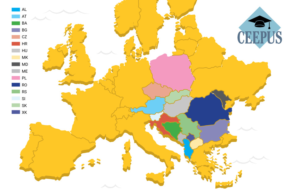 CEEPUS, Srednjoeuropski program razmjene za sveučilišne studije omogućava provođenje kraćeg ili dužeg vremena u nekoj od 15 zemalja koje sudjeluju u programu: Albanija, Austrija, Bosna i Hercegovina, Bugarska, Češka, Mađarska, Sjeverna Makedonija, Moldavija, Crna Gora, Poljska, Rumunjska, Srbija, Slovačka i Slovenija.